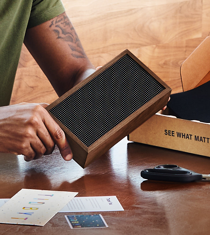 Include any custom message or literature you want. If you have a design or message you want to include, we can print and package it with the Tidbyt.