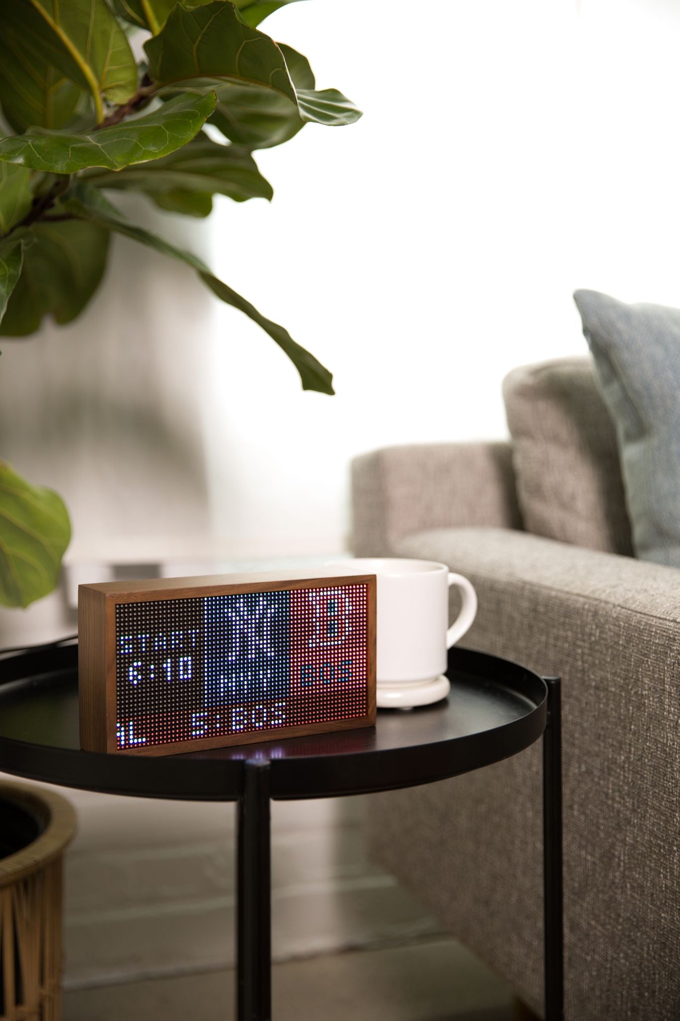 Shows upcoming games, current scores, date and